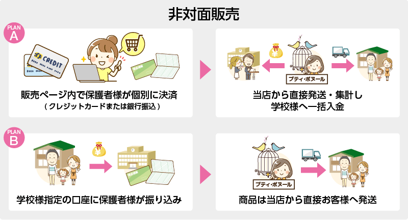 ※決済方法、お届け方法は各学校様のご要望により柔軟に対応します。